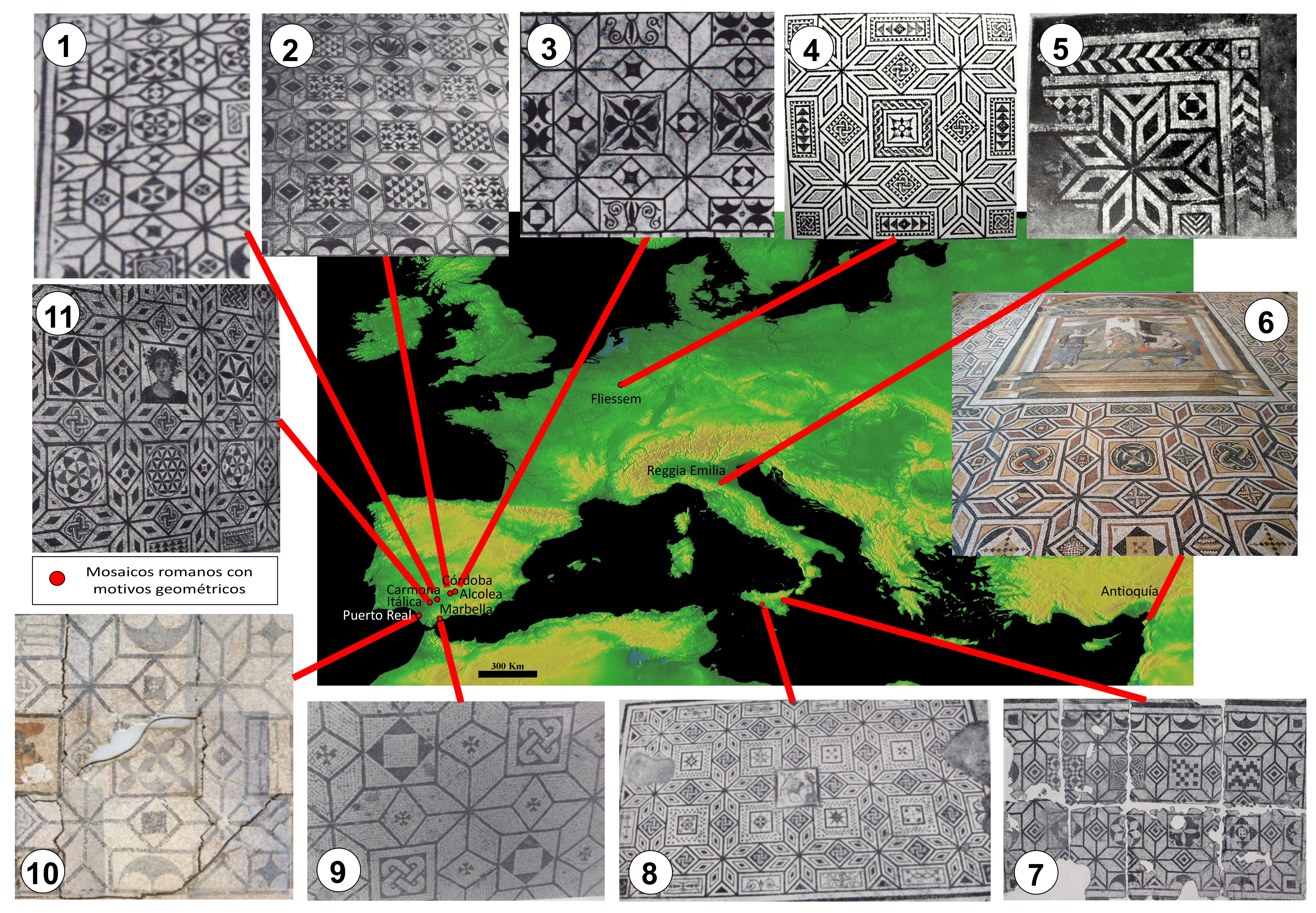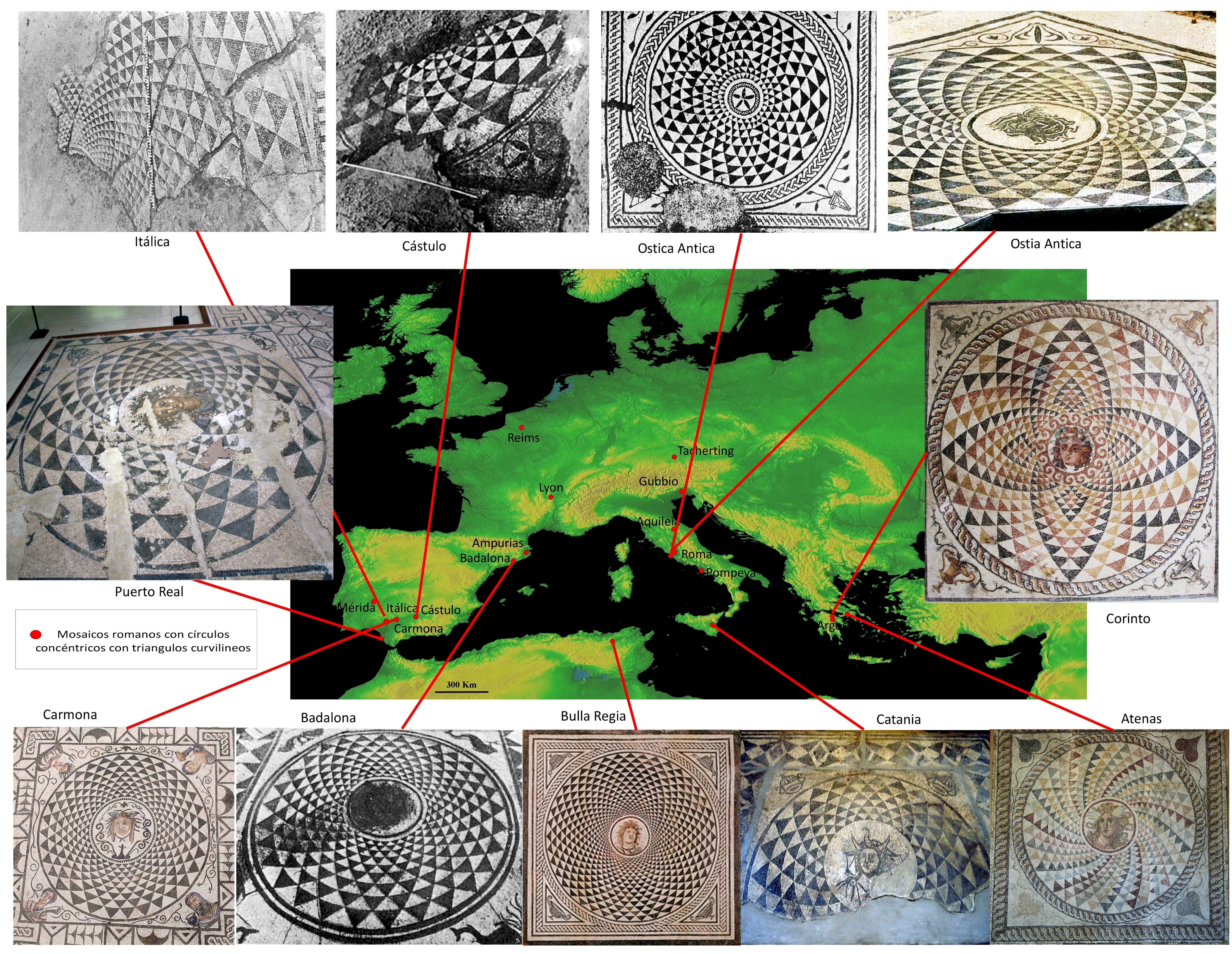 Luzón Nogué, J. (1988): “La Roseta de Triángulos Curvilíneos en el Mosaico Romano”. Anejos de Gerión I, pp. 213-241. Univ. Complutense, Madrid.