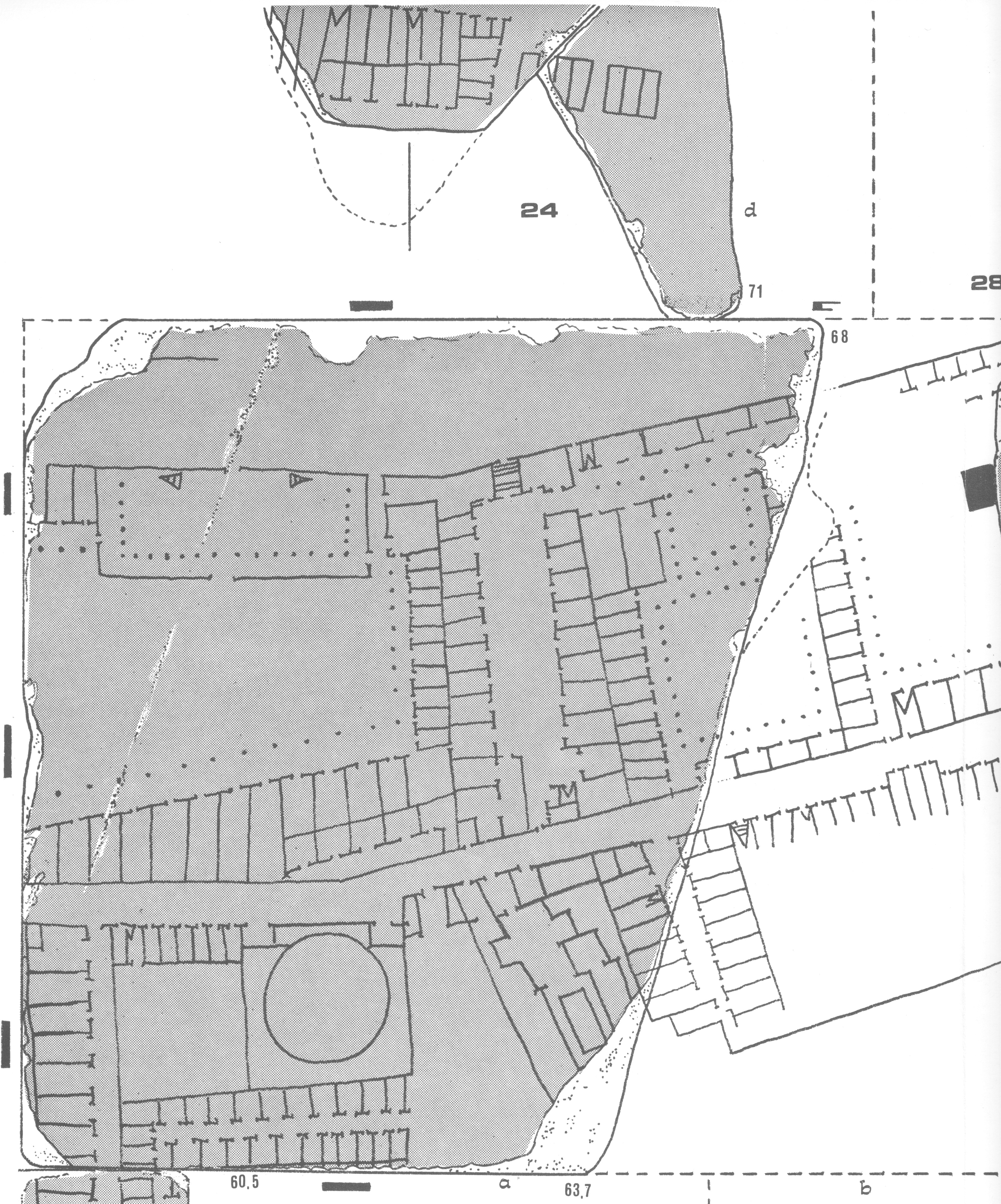 Some tracts of the Tiber ripae in imperial period are depicted in many slabs of the Severan marble plan of Rome. The ripae, right and left, South of the great bridges, appear variously but systematically equiped to discharge goods coming from Portus, to store and distribute them. From the Insula Tiberina to the North the ripae, less documented by the marble fragments, are very differently equiped on the left (Campus Martius) than on the right (suburban area, with horti). The ripae delimitation by cippi further northwards and southwars the urban area prove that the delimitation was evidently functional in controlling the flow of the Tiber and the connected activities, not only the town planning.Descargas
